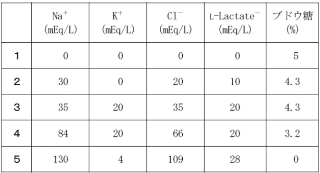 55歳女性。3日前から腹部膨満感と嘔気があり、昨日からの腹痛と間欠的な嘔吐のため受診した。診察の結果、血圧98/62 mmHg、脈拍104/分、尿量低下、Na 130 mEq/LK 3.5 mEq/LCl 90 mEq/Lであり、細胞外液減少を認めた。この患者に投与する輸液の組成として適切なのはどれか。1つ選べ。