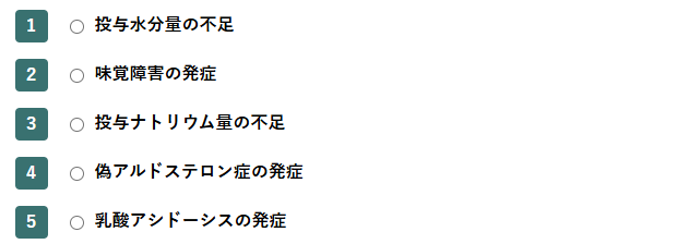 【実務】37歳男性。身長170 cm 体重62 kg。食道狭窄及び消化管出血のため絶食となり、高カロリー輸液の投与が開始された。他に投与されている薬剤はない。
