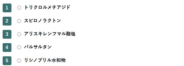他の生化学的検査値には異常を認めず、特記すべき家族歴もなかった。この患者の病側副腎摘出手術を行うまでの期間、高血圧症に対する治療薬について、医師より薬剤師に相談があった。提案すべき治療薬はどれか。1つ選べ。