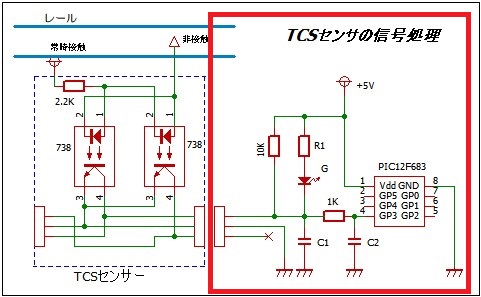 フォトカップラーより後は上記(卓上レイアウトで楽しもう TCSセンサの信号出力)を参考にした.