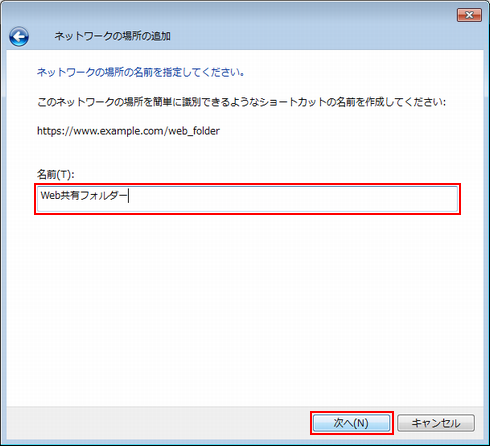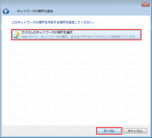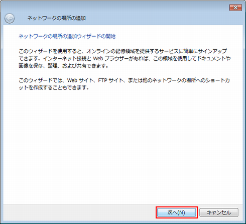 - [ネットワークの場所の追加ウィザード] が表示されます。