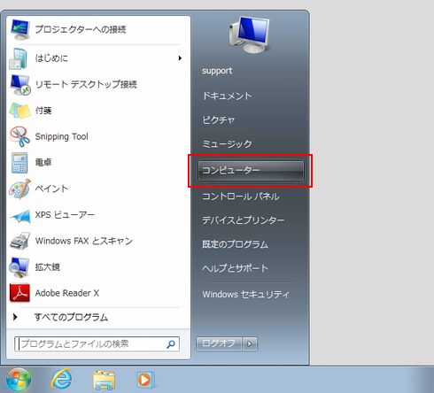 - [スタート] ボタンをクリックし、[ファイル名を指定して実行] をクリックします。