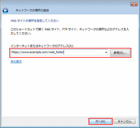 - ※ このマニュアルでは、『https://www.example.com/web_folder』に接続します。