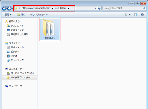 - ※ Windows 7 でWeb共有フォルダー(WebDAV)に接続するには、SSL接続(SSL証明書